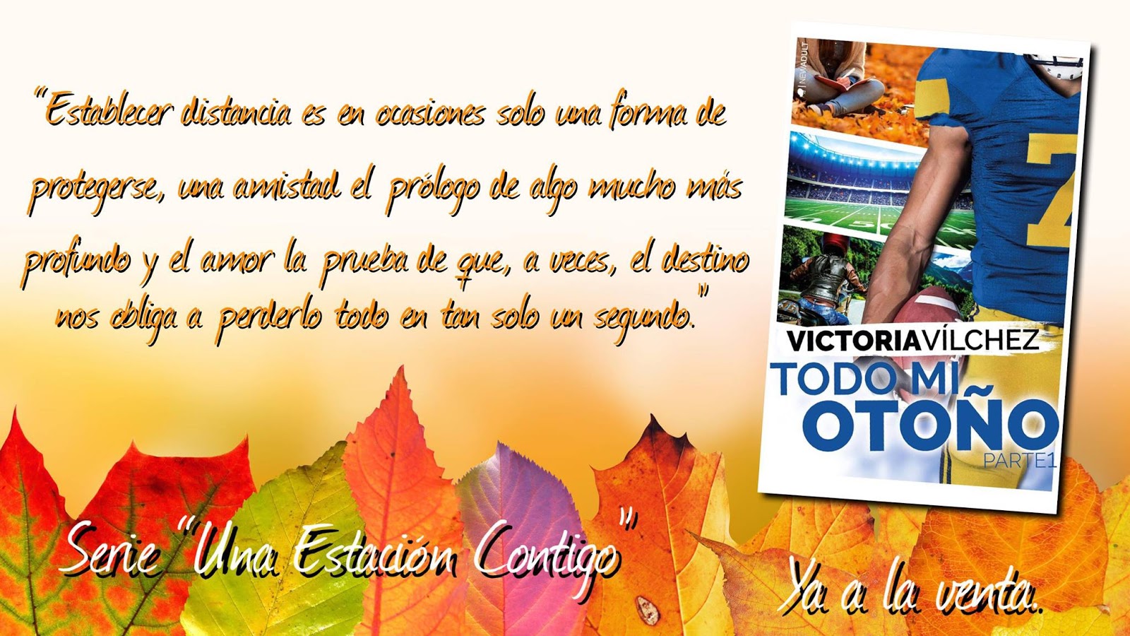 Hoy os traigo una novedad, se trata del nuevo libro de Victoria Vílchez, que salió a la venta la primera parte hace un par de días. Como seguro sabréis me gusta mucho como escribe la autora, y adoro sus historias, por lo que siempre es motivo de alegría cuando escribe un nuevo libro. En esta ocasión se trata del segundo libro de la serie ''Una estación contigo'' que empezó con '' Más que un verano" y ahora continua con todo ''Todo mi otoño", en el que conoceremos a Sean Donalson, un chico que sin duda os va a robar el corazón. Os dejo la ficha del libro y la portada, espero que os animéis a leerlo porque os aseguro que vale la pena.